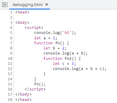 위 코드를 디버깅하길 원한다면 원하는 라인을 클릭해 중단점으로 잡고 리로드를 해준다.