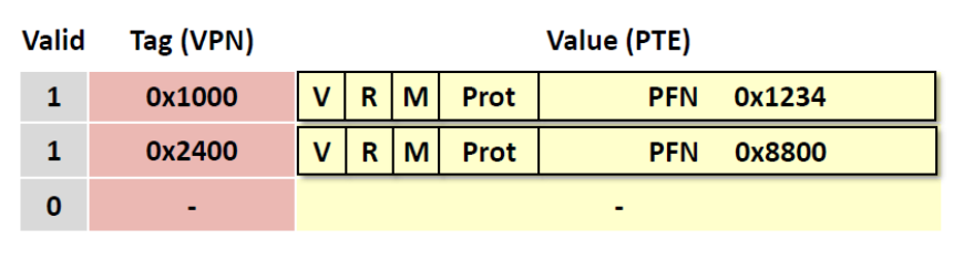 위 경우에 Process A의 VPN 10번 주소의 변환 정보, Process B의 VPN 10번 주소의 변환 정보가 TLB Table에 담겨있다.