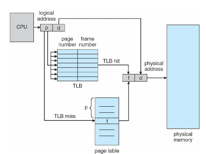 즉, TLB(하드웨어)에 먼저 접근한뒤에 없을 때에만 메모리(page table)에 접근하므로 속도 면에서 더 효율적.