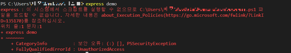 위 에러의 발생원인은 스크립트 실행 권한이 제한되어 있는 상태이기 때문에 발생한다.